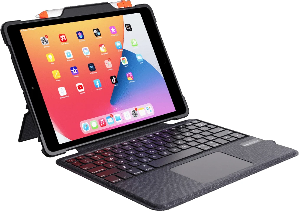 Entdecke das DEQSTER Rugged Touch Keyboard mit seinem Multi-Touch-Trackpad, das speziell für das iPad 10.2″ entwickelt wurde.