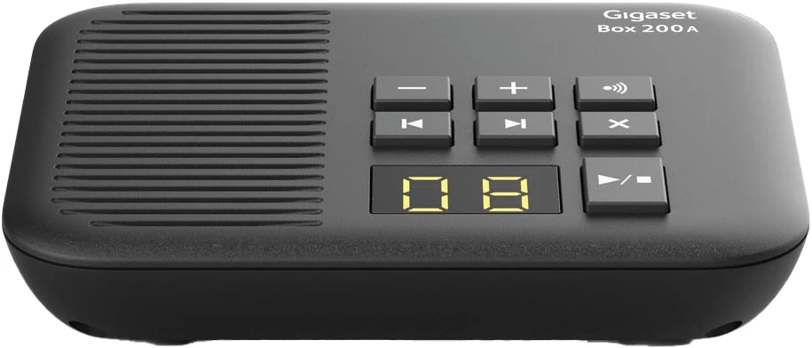 das Gigaset E290A mit Anrufbeantworter Immer voll informiert – auch wenn Sie einmal nicht erreichbar sind. Mit bis zu 20 Minuten Aufnahmezeit bietet der integrierte digitale Anrufbeantworter genug Platz für wichtige Nachrichten und sichert die Aufzeichnungen sogar bei Stromausfall zuverlässig. Wenn neue Nachrichten vorliegen, wird dies sowohl am Mobilteil, als auch an der Basisstation angezeigt. Abhören lassen sich die Nachrichten ebenfalls vom Mobilteil aus und – ganz bequem per Tastendruck – an der Basisstation. Sind Sie über einen längeren Zeitraum nicht zu Hause, nutzen Sie einfach die Fernabfrage-Option. Um den Anrufbeantworter ganz nach Ihren Wünschen zu konfigurieren, können Sie die Aufzeichnungslänge frei einstellen und eine individuelle Ansage aufsprechen.
